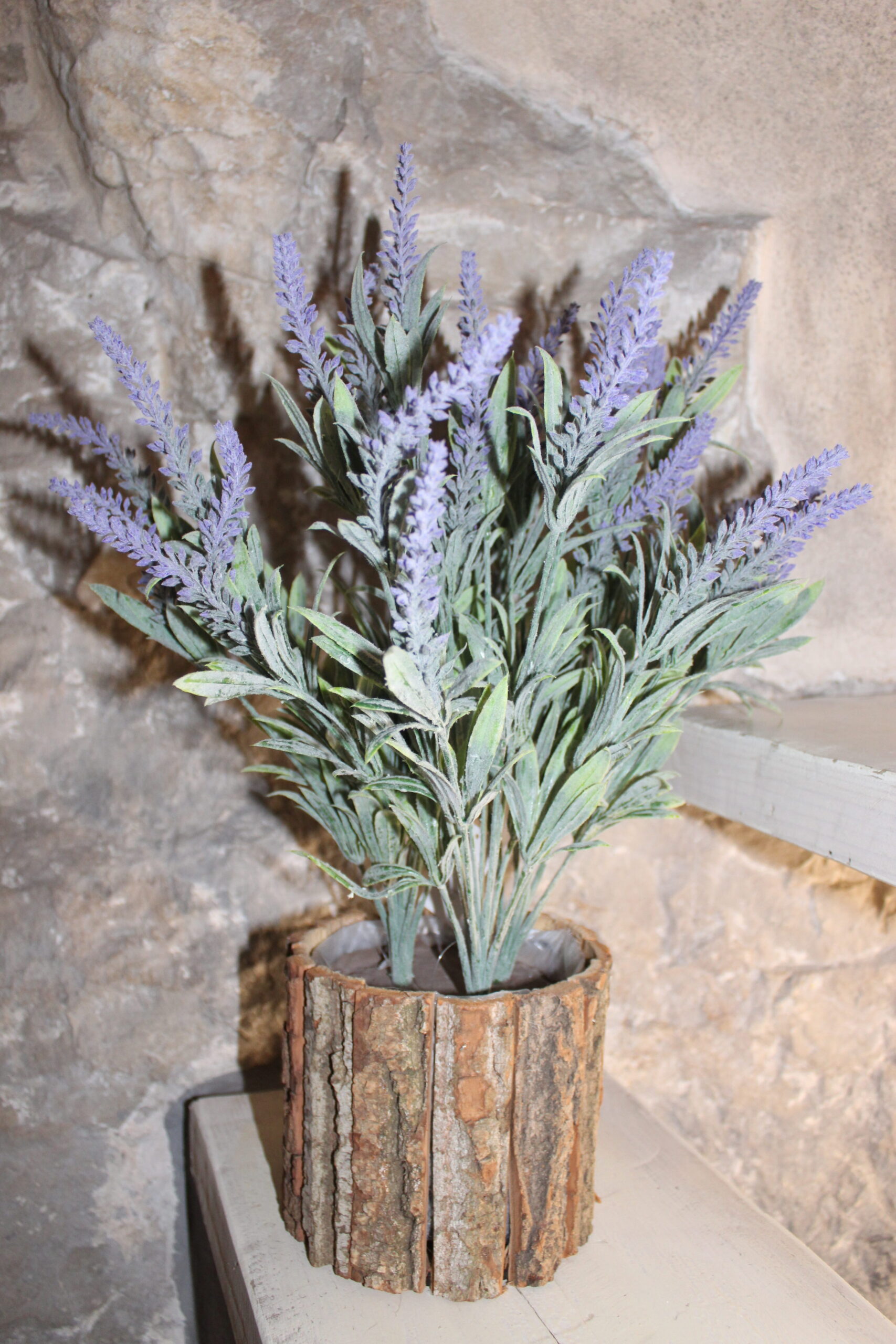 Vaso con lavanda artificiale